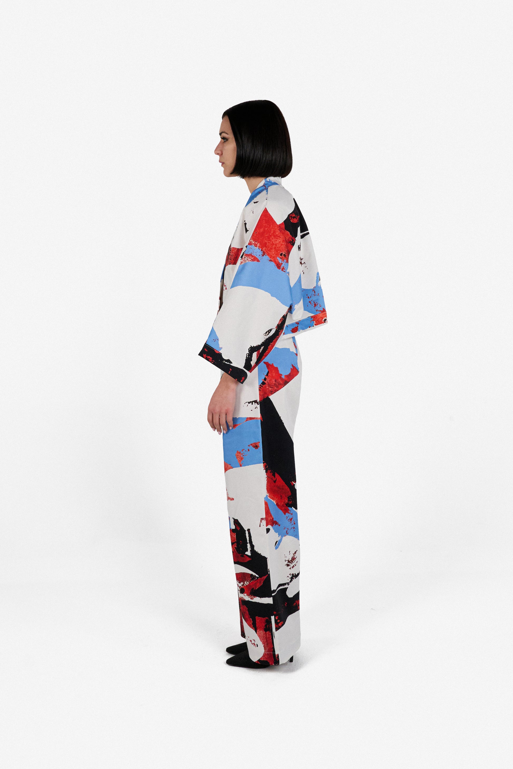 solace short kimono red & blue